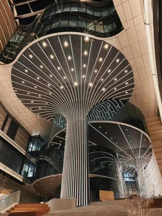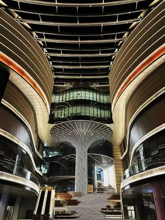 栖山翠隐:干涉下千里广场,领先映入眼帘的是极具张力的树状立柱,其拔地而起,宛如当然孕育的巨木,成为空间的视觉焦点。若从空中俯视,总计这个词海淀大悦城好似一单身姿优雅的朱雀,带着祯祥之气,翩翩然停歇在这棵“参天大树”之上,“朱雀”舒展着丽都的羽翼,与周围邑邑苍苍的绿植横暴分明,共同构建出“山树为盖,岩石为屏”的当然意趣,赋予建筑昭彰的生命力与当代感。