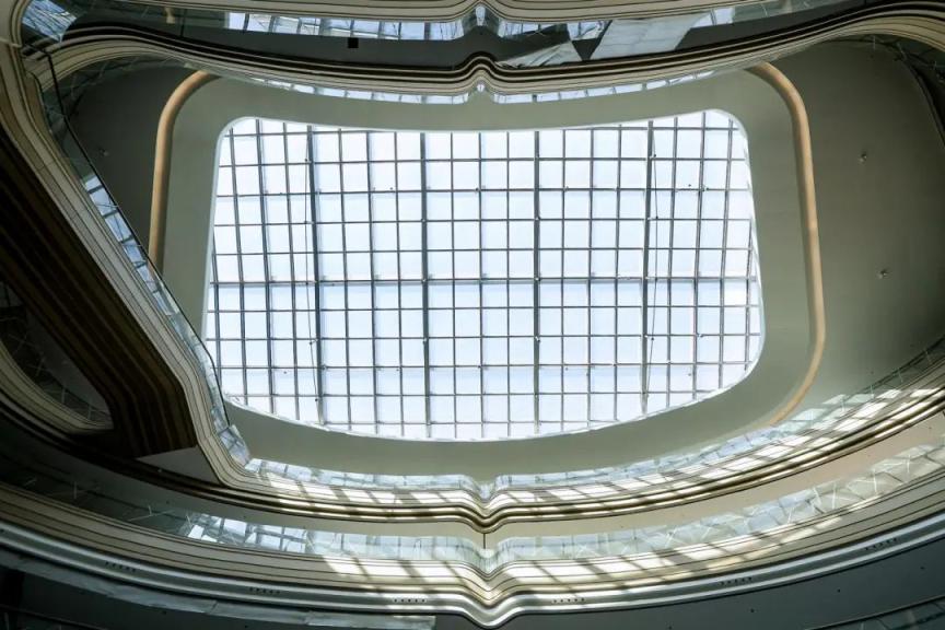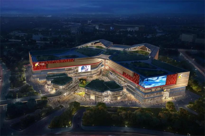 从俯视视角来看,海淀大悦城的建筑呈现出“朱雀展翅,向北高飞”的古典视觉意料,朱雀翘首,遥看北院,酿成与故宫博物院北院区共振的奇妙磁场,传达着展翅欲飞的动态与期望,展现出历史文化的沉静与当代联想的张力。